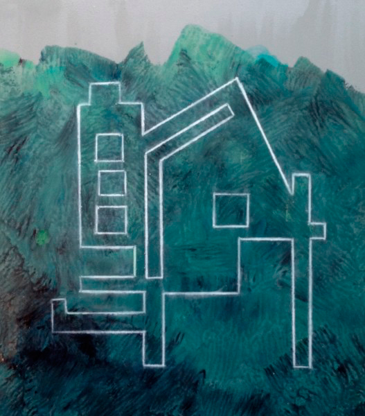 Serie, open and in constant progression, of paintings on aluminium, 25 × 25 cm (approx. 10 × 10 in), presenting a composition of abstract architectural signs, from 2015.