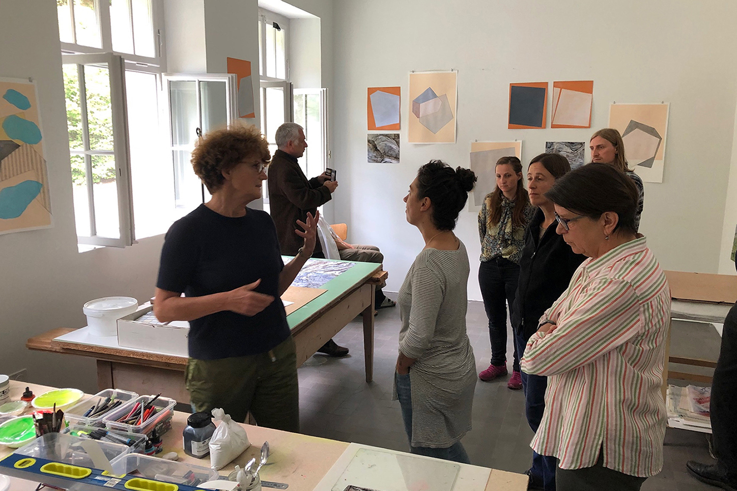 Fundaziun Nairs open studio, 2019. On the wall: the drawings Les Millimétrés and Schiste métamorphique and the photos Les plis du monde